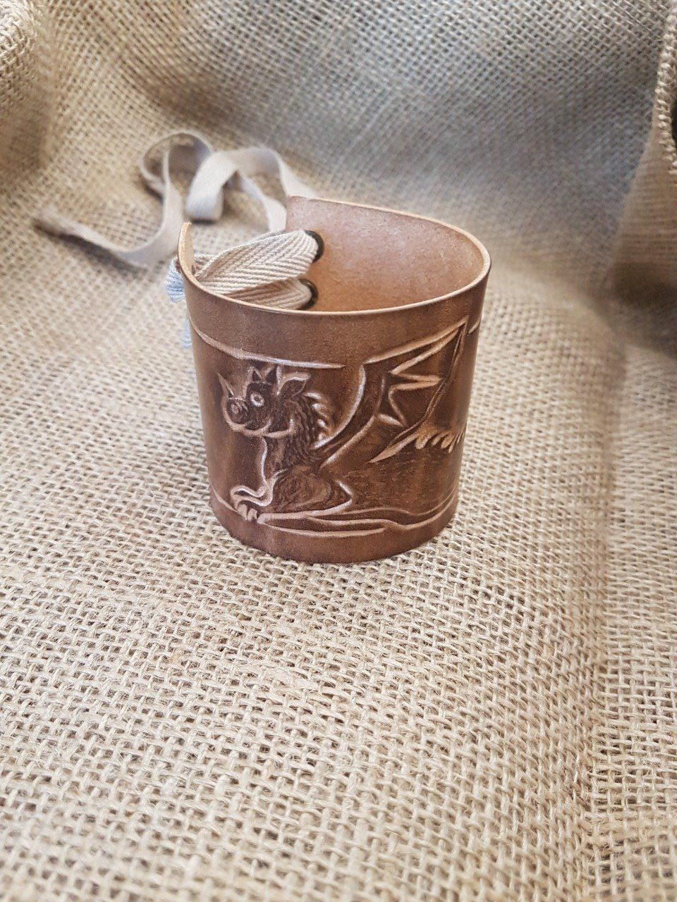Bracelet en cuir de tannage végétal revalorisé représentant un dragon Tchouvache.