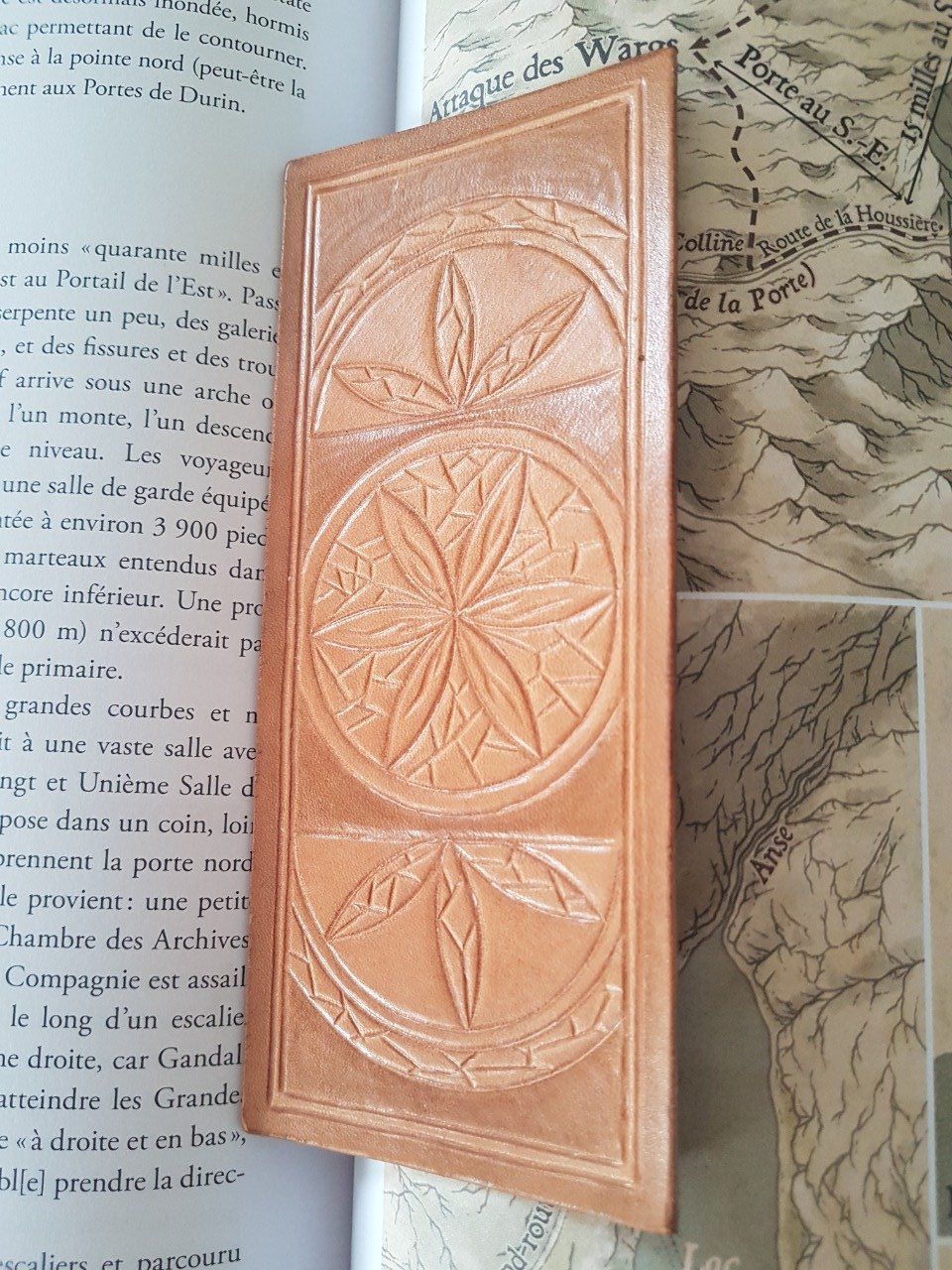 Grand marque-page en cuir "Rosace morcelée"